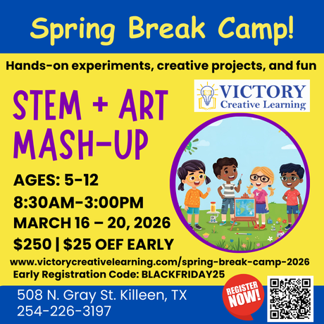 Contact information: info@victorycreativelearning.com or 254-226-3197